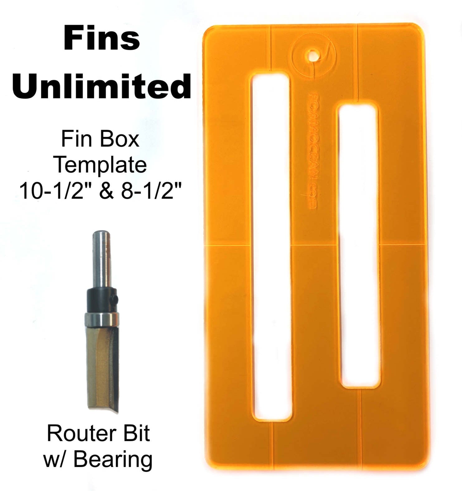 The FU Long Channel Box Template features a 10.5” or and 8.5” box selection. The Acrylic template works with the 1-1/8 inch deep x 1/4” Shaft, router bit with bearing. Designed to give a 1/16” gap surrounding the box. Tape is used to set the template in place on the board, if needed.