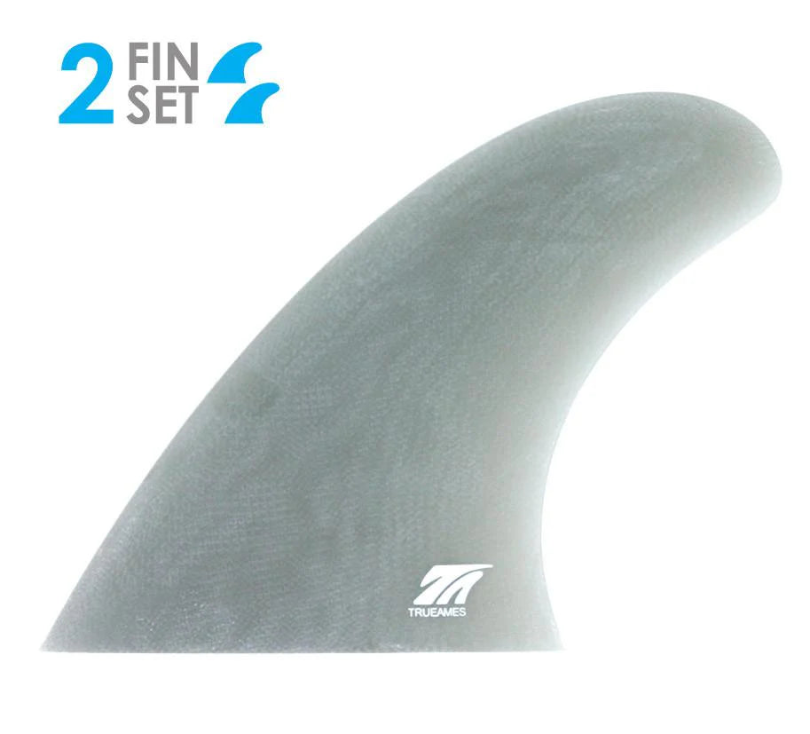 True Ames were making these fins in the early 80s. This is a true classic twin fin set. A well balanced proven design-solid glass.