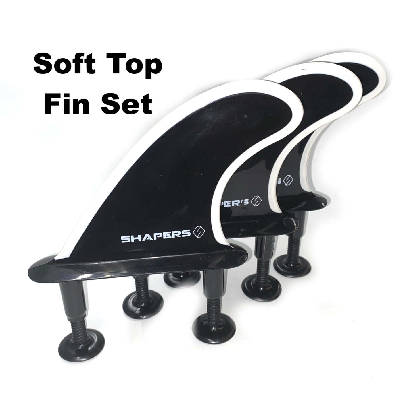 - Shapers Softop Surfboard replacement (3) fin set. Black Flexible Nylon construction. Includes soft Safety edge to prevent fin cuts.